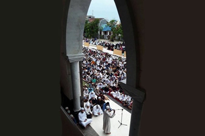 Masjid Abu Darda, satu dari sekian Masjid di tanah air yang mengedepankan kekhusyukan ketika sholat. Pembeda antara imam dan makmum saat sholat pun hanyalah warna.