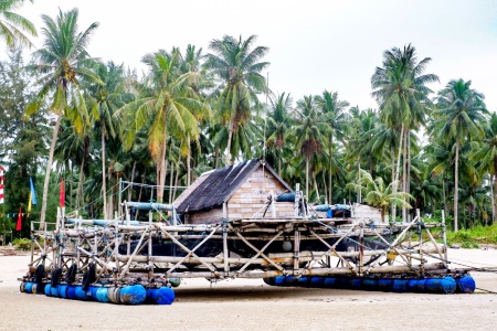 Semakin petang air laut semakin surut. Pondok-pondok kecil ini tidak lagi mengapung.