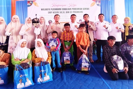 PT Angkasa Pura Indonesia salurkan scr terlihat saat momentum peresmian gedung baru SMP Negeri 50, 51 dan 52 Pekanbaru.