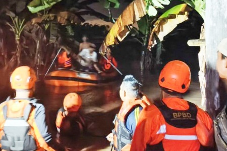 Peristiwa ini terjadi setelah hujan berintensitas tinggi mengguyur wilayah tersebut sejak Sabtu malam hingga menyebabkan air meluap ke permukiman.