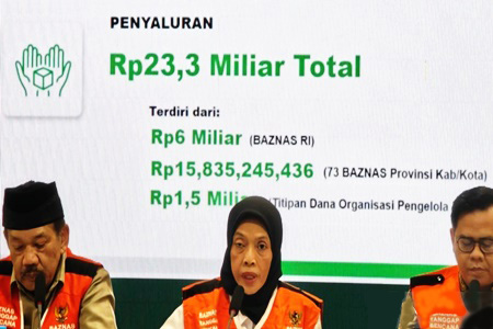 Secara nasional, total penyaluran bantuan kebencanaan Baznas di seluruh Indonesia telah mencapai Rp 23,3 miliar.