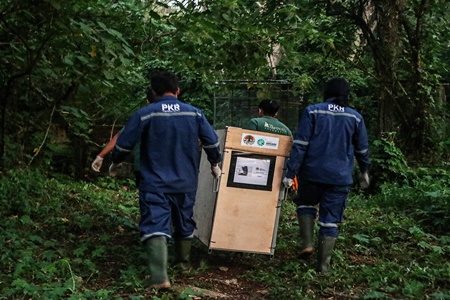 Dengan dukungan Yayasan Arsari Djojohadikusumo, Balai Besar KSDA Riau berhasil merelokasi empat siamang ke pusat rehabilitasi.