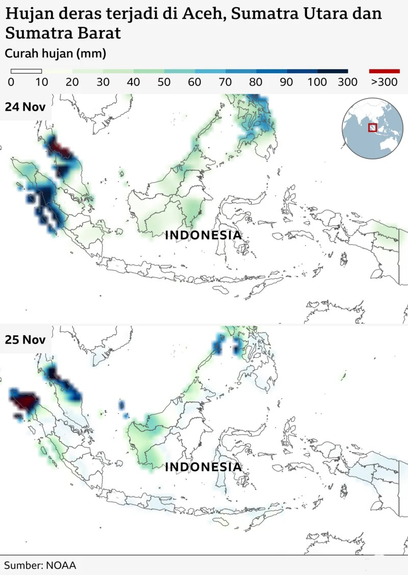 Pada Kamis (04/12), Badan Nasional Penanggulangan Bencana menyebut jalur darat untuk bantuan logistik ke Aceh Tamiang sudah bisa ditembus dari Langkat, Sumut.
