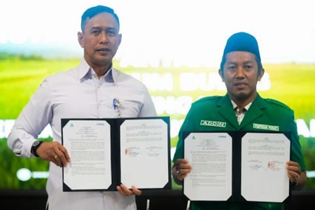 JAKARTA—Perum Bulog dan Gerakan Pemuda (GP) Ansor menandatangani nota kesepahaman (MoU) tentang kerja sama pengadaan dan penyaluran pangan di Kantor Pusat Bulog, Jakarta, Jumat (3/10/2025).