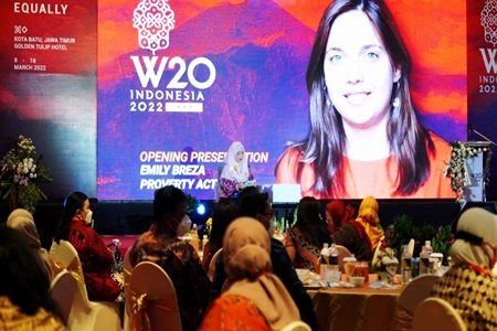 Ketua Delegasi W20 Indonesia, Hadriani Uli Silalahi menyampaikan, Indonesia mendorong langkah nyata dalam mengatasi ketidaksetaraan sistemik.