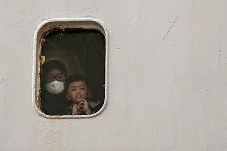 Sebagian dari mereka terpaksa tidur di lorong dan dek terbuka kapal karena tidak mendapatkan tempat tidur.