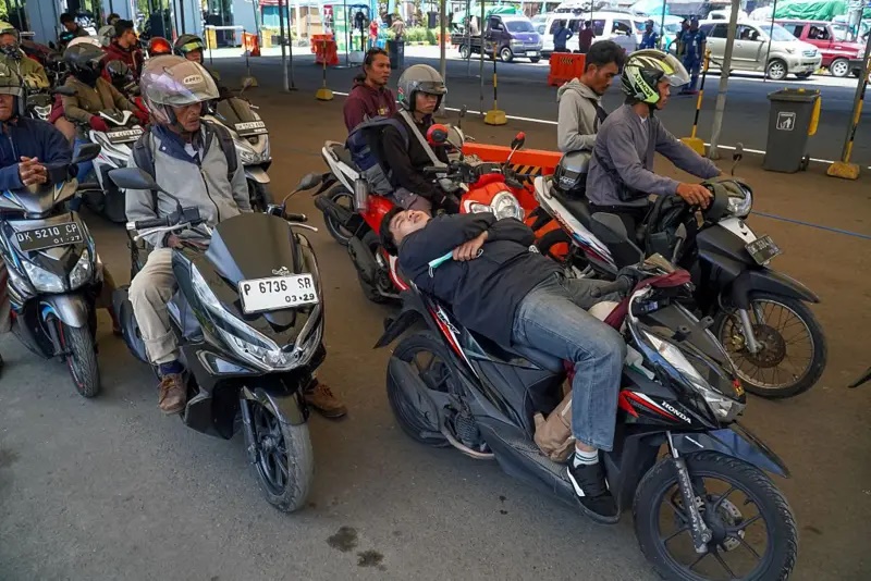 Suryadi, pemudik asal Cikarang, Jawa Barat, adalah salah satu dari ribuan orang yang menempuh perjalanan darat menuju Sumatra menggunakan sepeda motor.