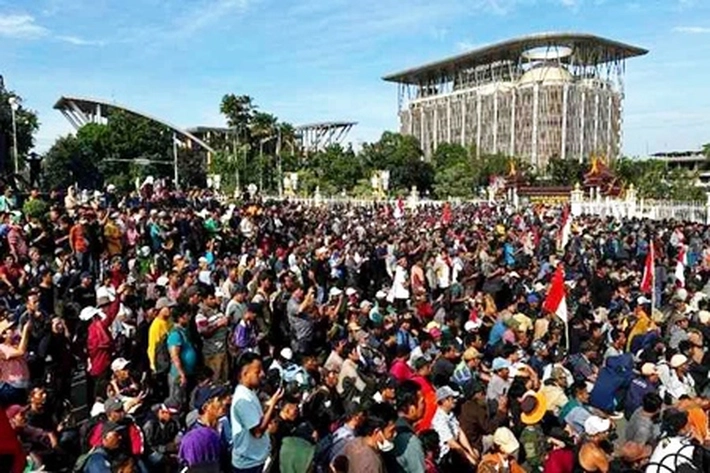 PEKANBARU - Aksi unjuk rasa massa Aliansi Mahasiswa dan Masyarakat Pelalawan (AMMP) yang menolak direlokasi dari kawasan Taman Nasional Tesso Nilo (TNTN) di Kantor Gubernur Riau, Senin 21 Juli 2025 sempat diwarnai kericuhan.