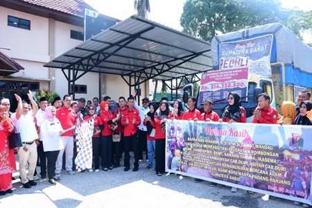 BENGKALIS - Bupati Kasmarni bersama masyarakat Kecamatan Mandau memberikan bantuan sebesar Rp514 juta lebih untuk masyarakat Provinsi Sumatera Barat (Sumbar) yang menjadi korban bencana banjir bandang.