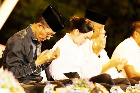 BATAM - Suasana Dataran Engku Putri, Batam, dipenuhi lantunan doa dari berbagai umat beragama.