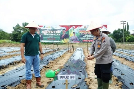 INDERAGIRIHULU- Polres Indragiri Hulu (Inhu) bersama PT Tunggal Perkasa Plantation (PT TPP) melaksanakan program penanaman jagung serentak dalam rangka mendukung ketahanan pangan nasional.