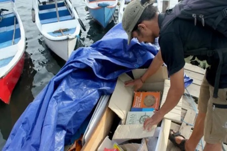 Buku-buku itu dfikirim ke ratusan simpul pustaka di berbagai penjuru Indonesia, yang merupakan relawan dari Pustaka Bergerak, komunitas yang sudah bertahun-tahun mengirimkan buku secara gratis.