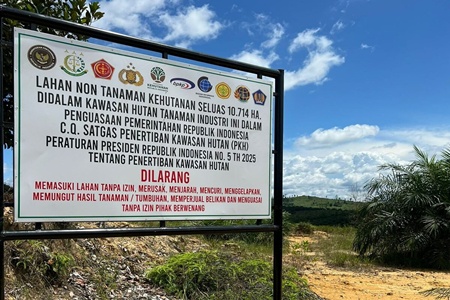 Pemasangan plang merupakan langkah awal Satgas PKH sebagai upaya mengamankan kembali hutan negara yang gencar dilakukan sejak Maret lalu.