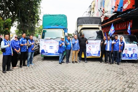 Sebanyak dua truk colt diesel dan satu mobil pickup diberangkatkan membawa logistik berupa 20.000 paket sembako serta kebutuhan pokok lainnya.