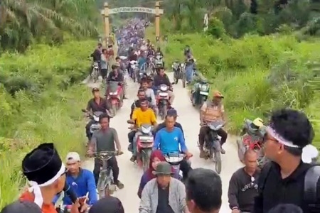 BENGKALIS - Warga Rupat dari tiga wilayah, yakni Desa Darul Aman, Kelurahan Tanjung Kapal, dan Kelurahan Batu Panjang, melakukan aksi demonstrasi besar-besaran dengan menyegel akses jalan menuju perusahaan perkebunan PT Pria Tama Riau.